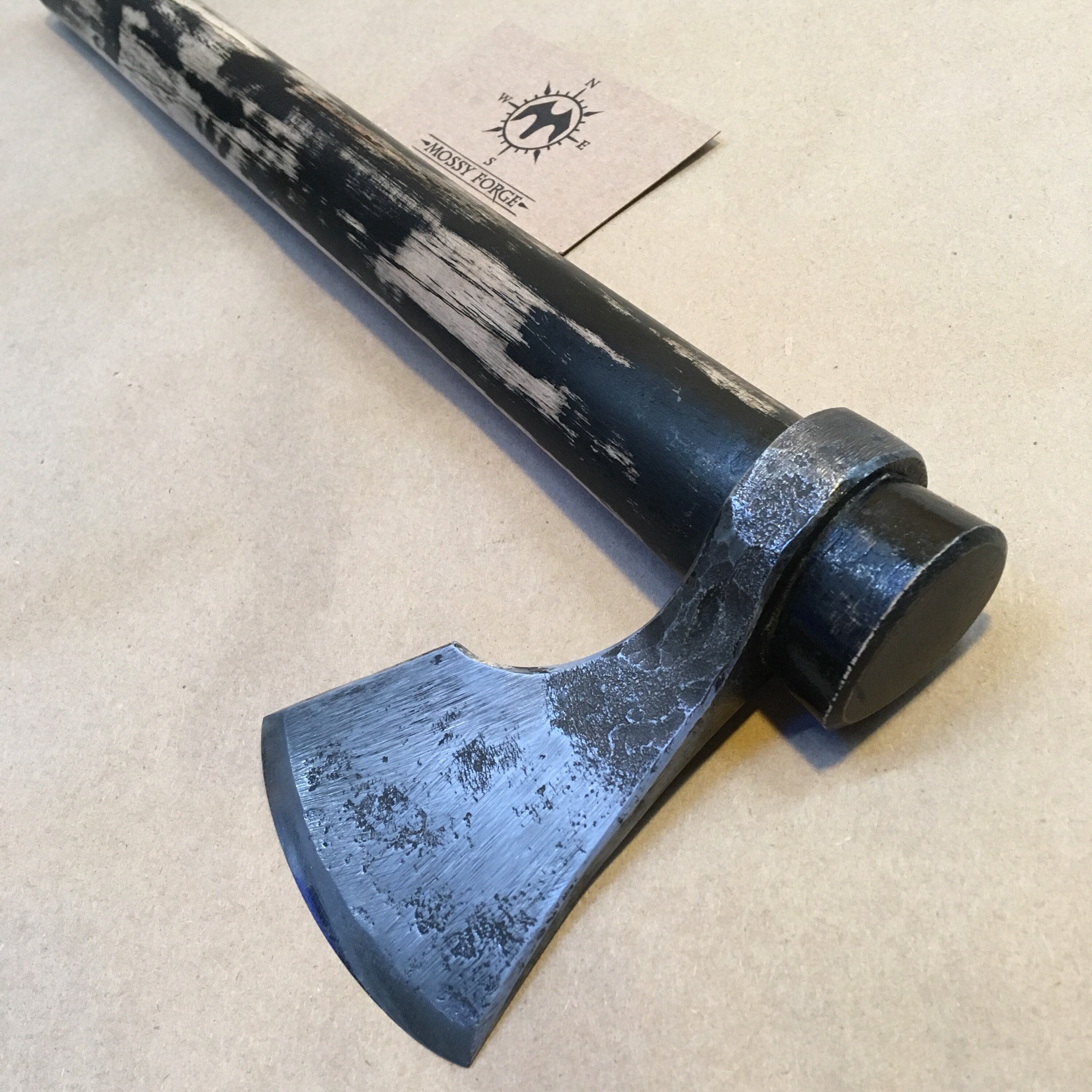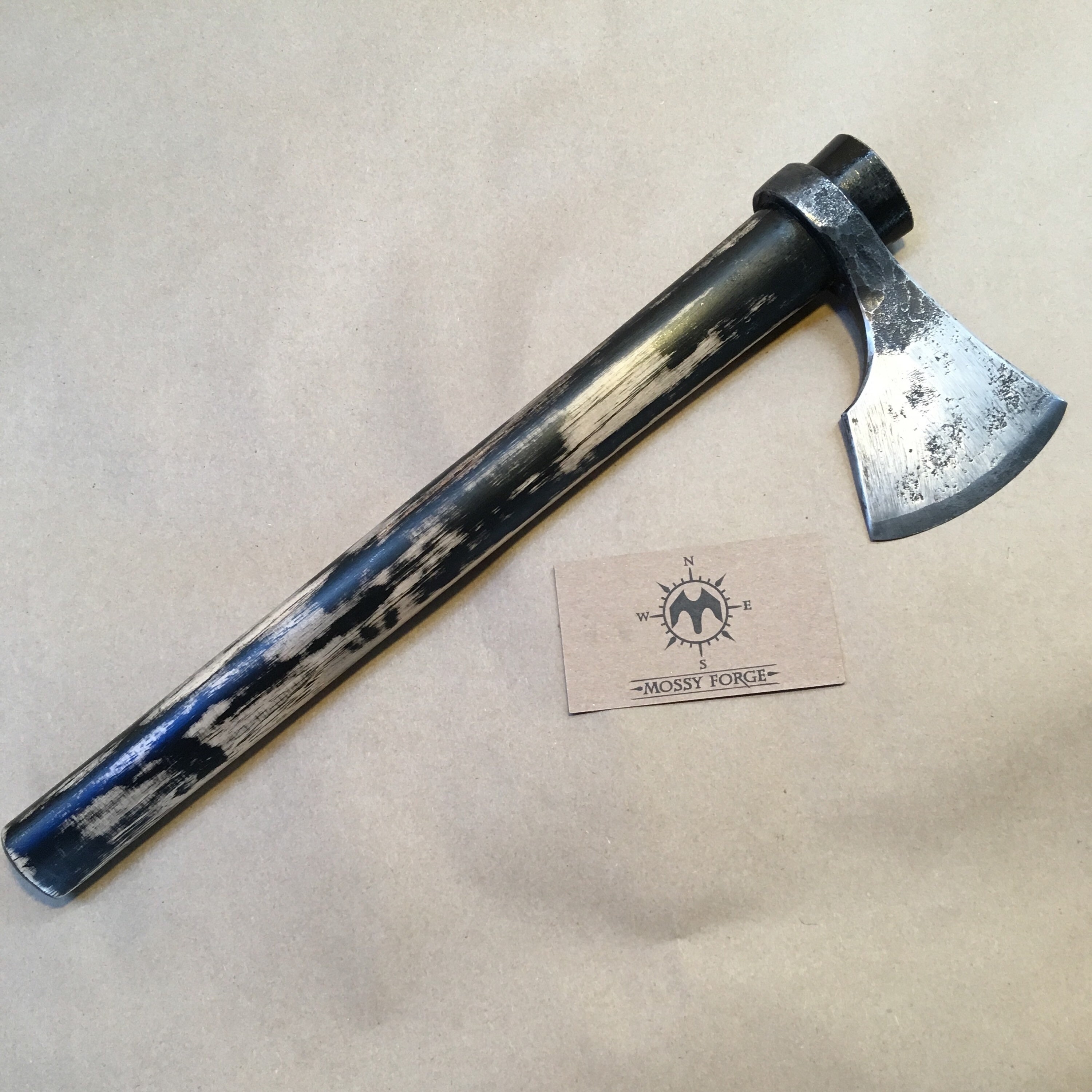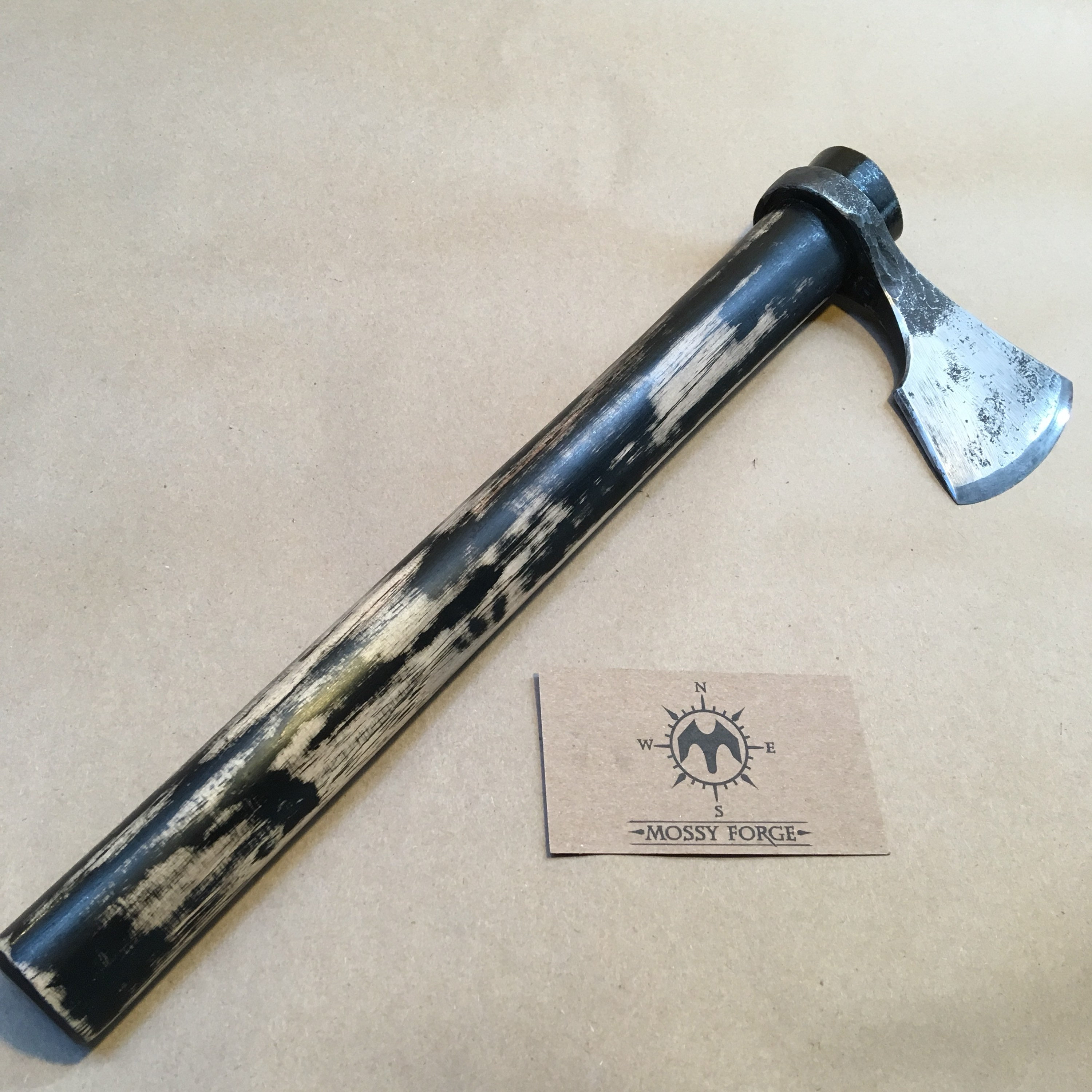 Hand forged Tomahawk made from recycled 5160 steel reclaimed from 18 wheeler leaf springs.