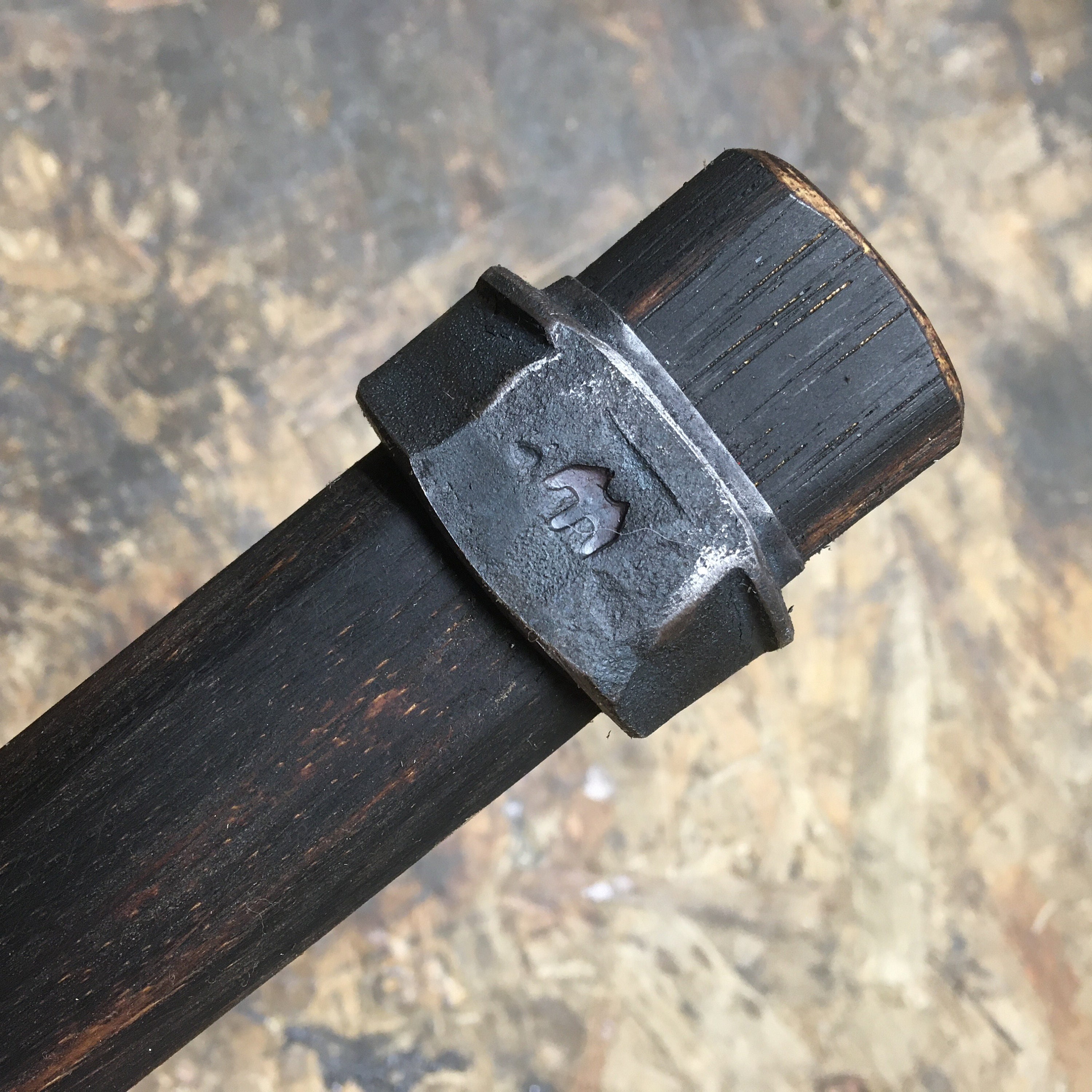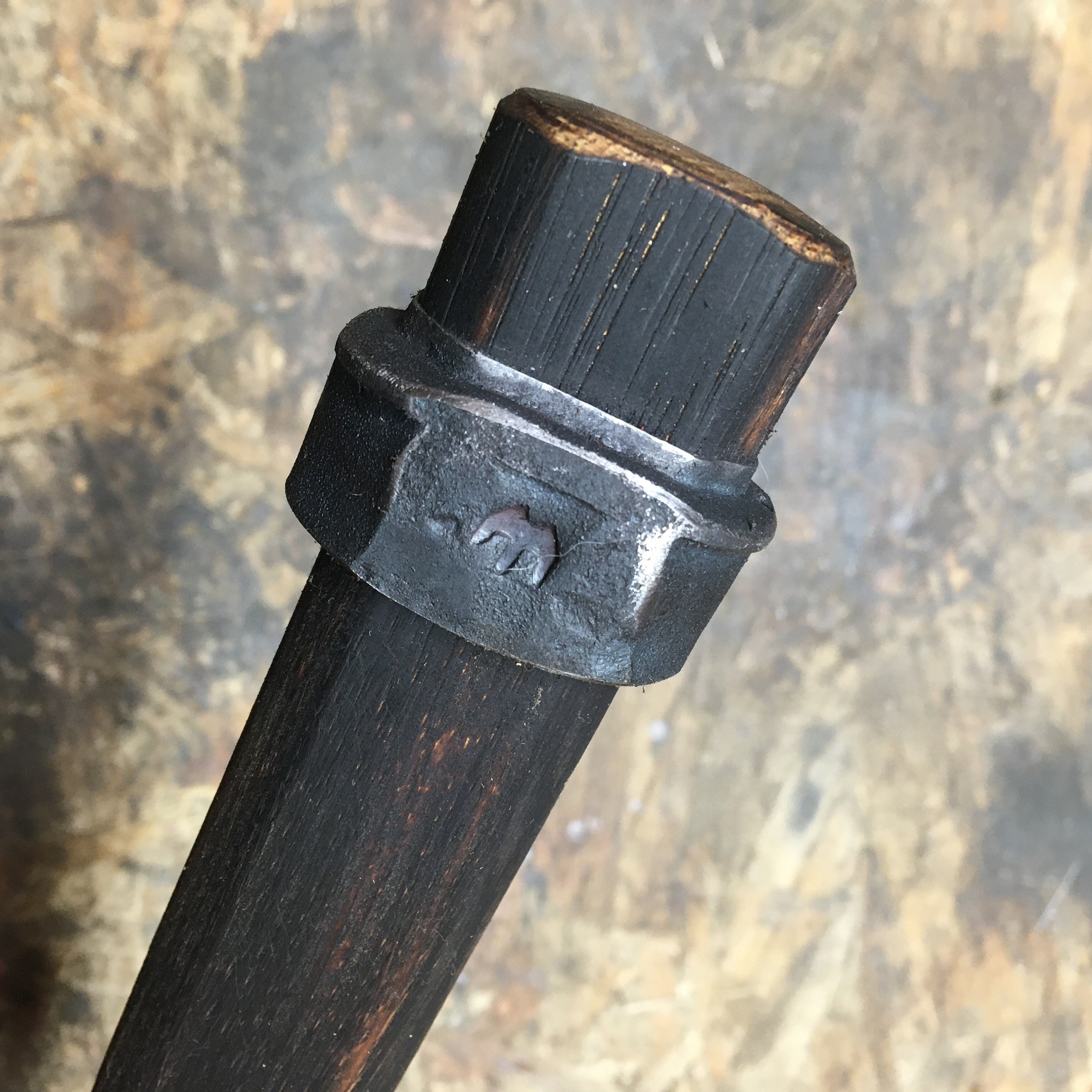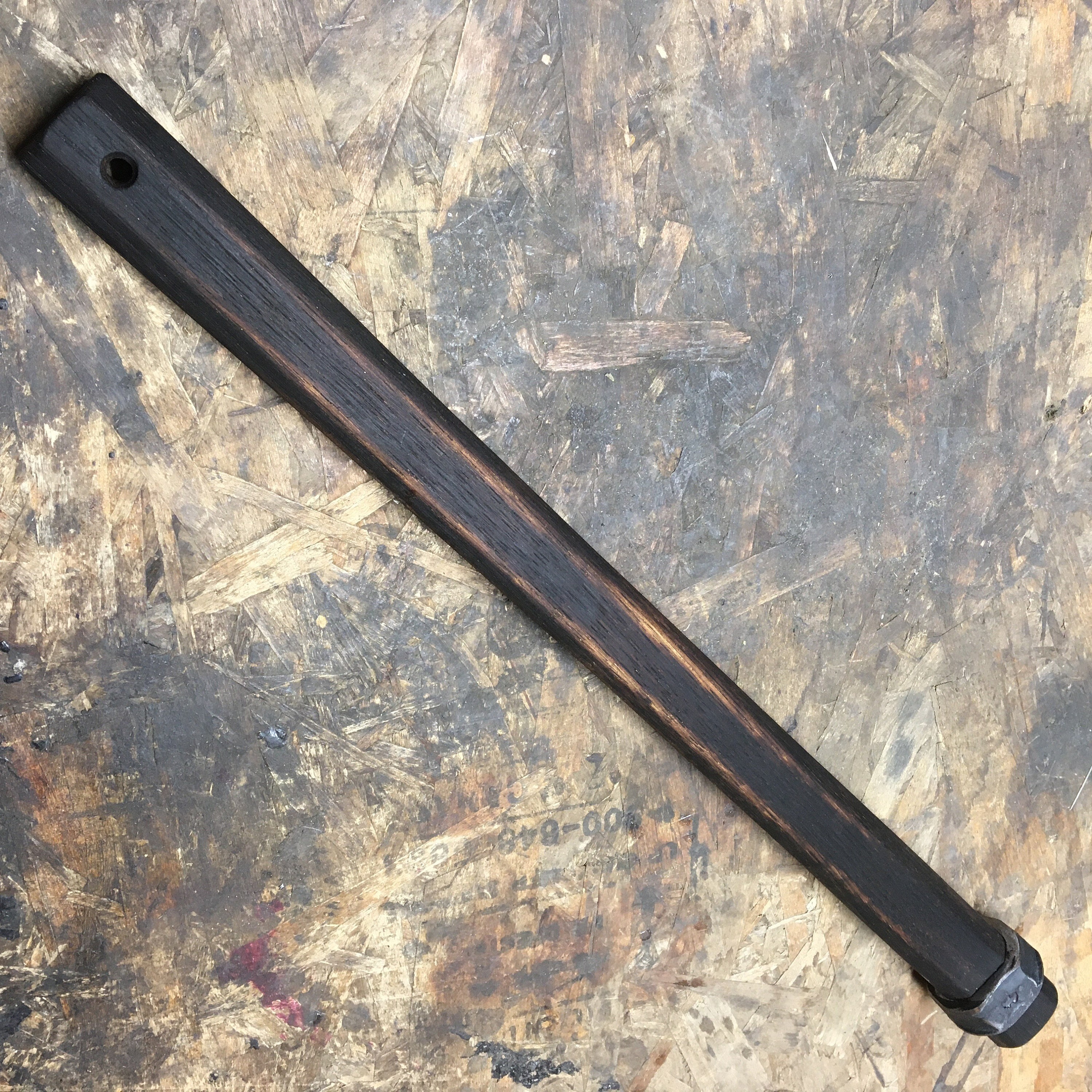 Hand forged from 33mm M22 Tractor/trailer lug nut and press mounted on hickory handles using the inverted eye friction fit method under a 12 ton shop press.